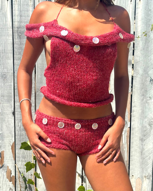 Lilac Rhinestone Pearl Charm Top
