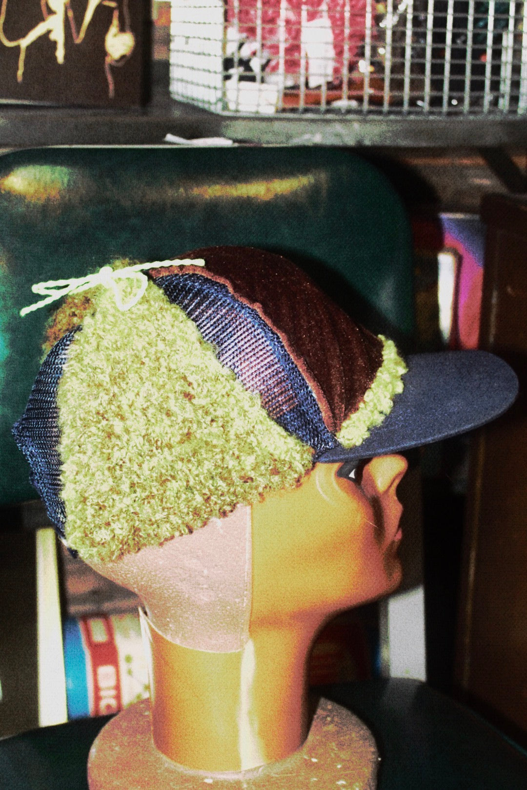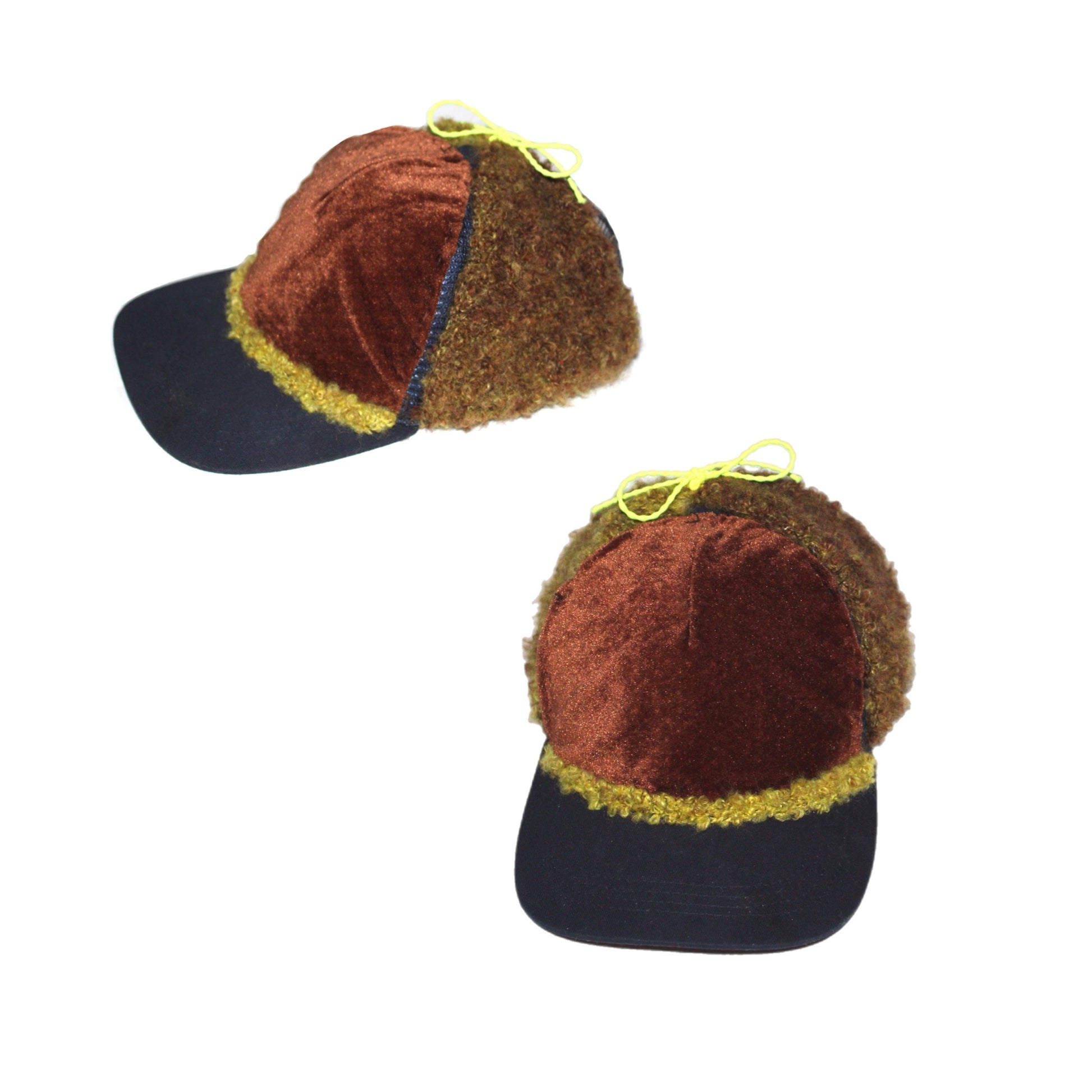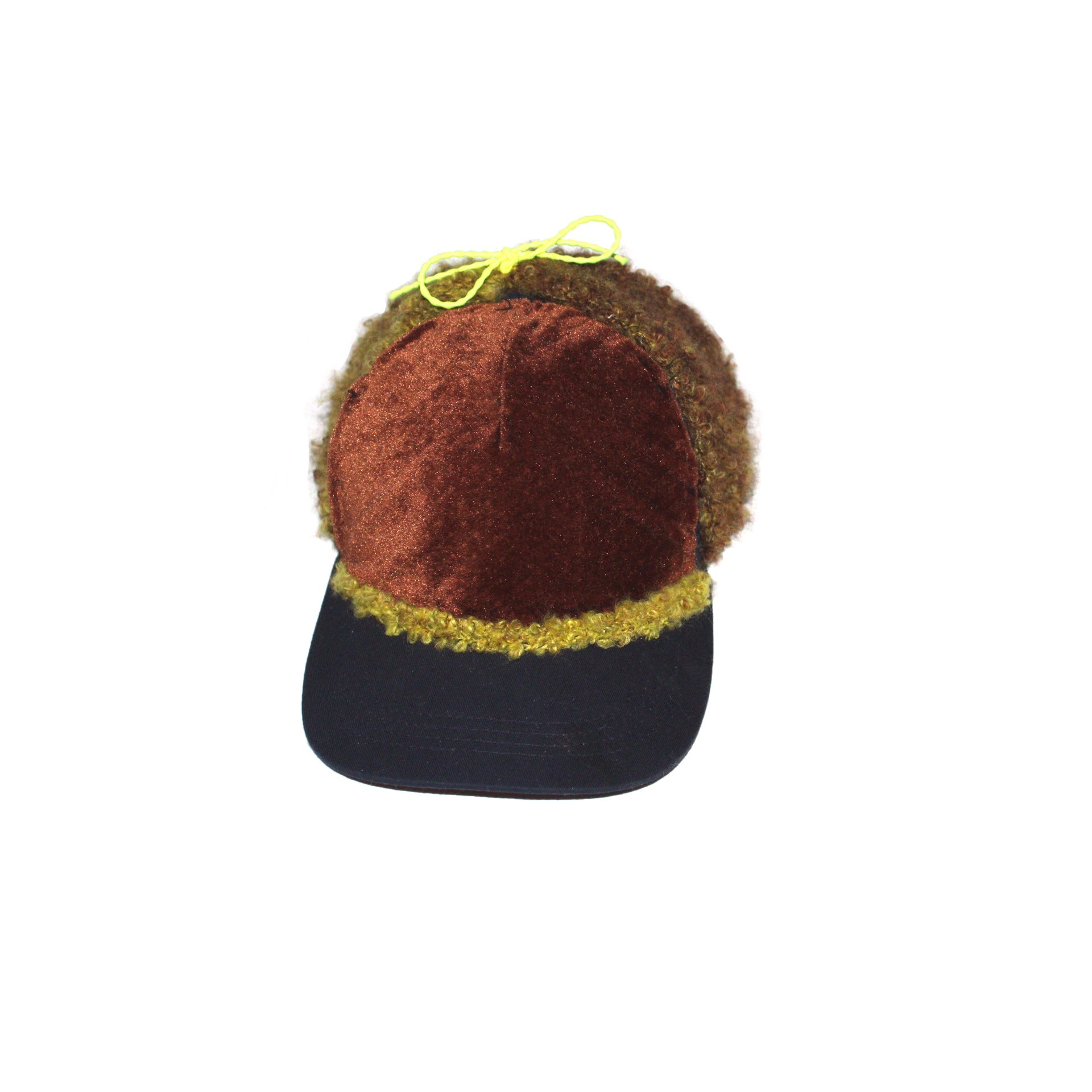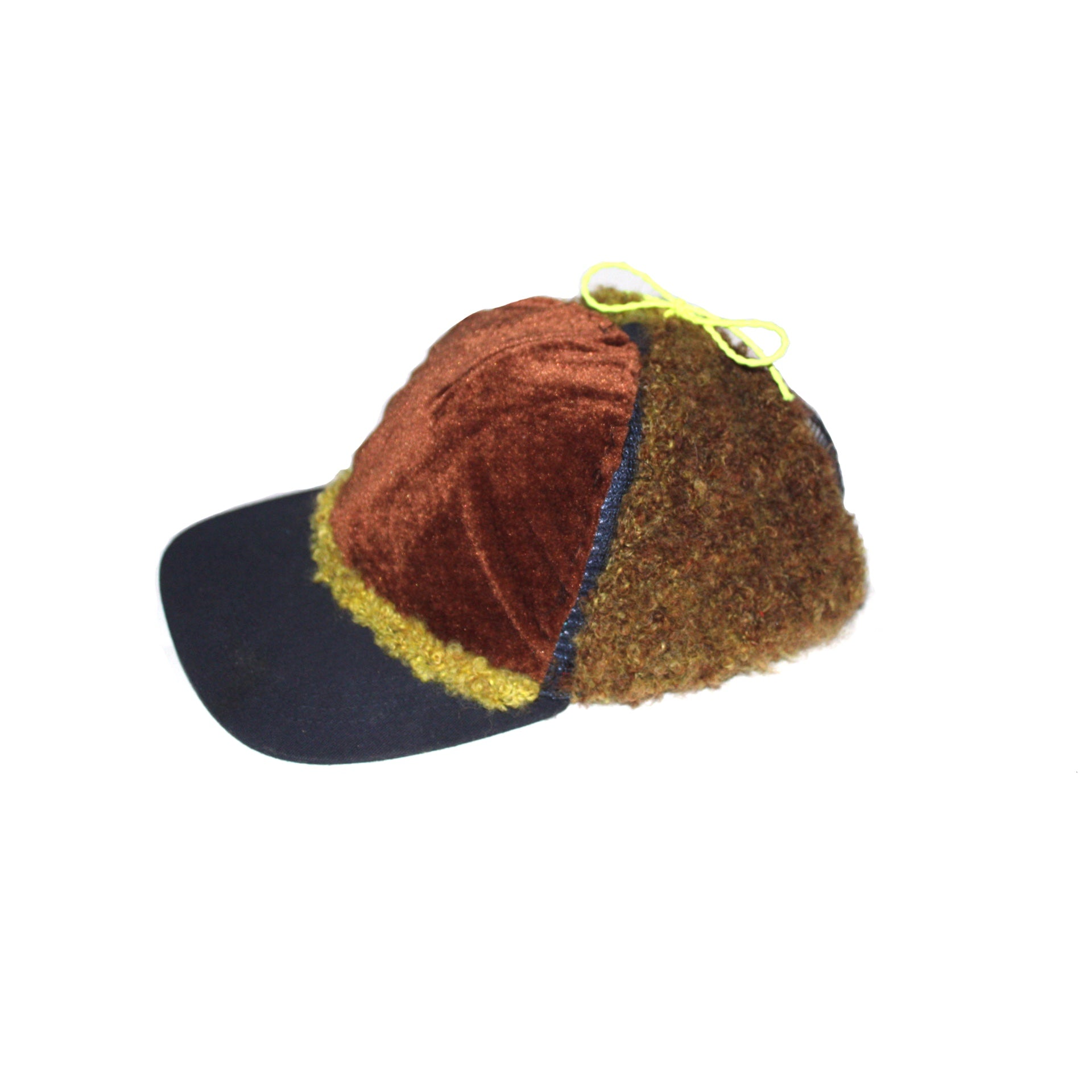 Real Mohair Velvet Brown Trucker Hat with crochet details.